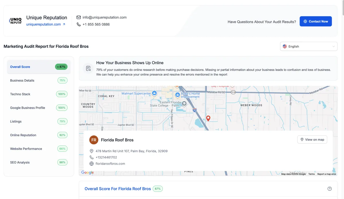 Your online presence directly impacts how customers find and choose your business—and most owners have no clear visibility into where they stand. Unique Reputations comprehensive SEO optimization audit delivers a detailed breakdown of your website performance, search visibility, and overall digital footprint. This report analyzes critical factors including on-page SEO issues, technical errors, backlink signals, and your local Google ranking, while also evaluating your Google Business Profile strength and competitive positioning.