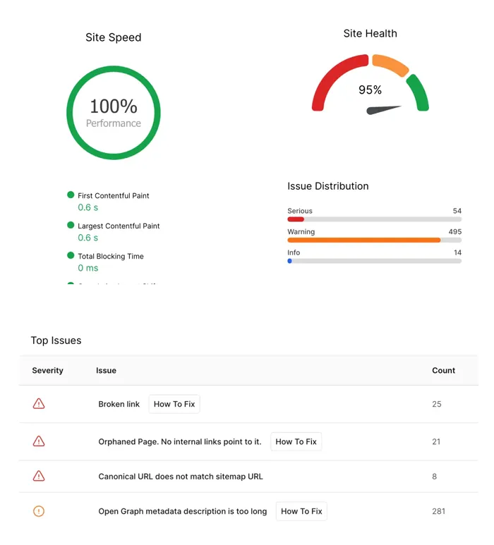 (report shows all current SEO issues and can be generated every month to see your ROI)